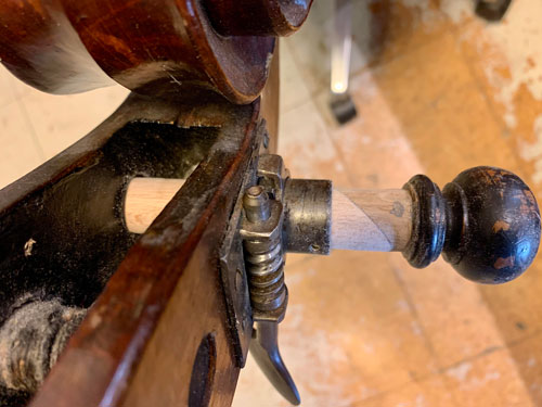 Her har jeg reparert en defekt stemmeskrue på kontrabass/cello, og sørget for at den fungerer presist og jevnt igjen, slik at instrumentet er lett å stemme.